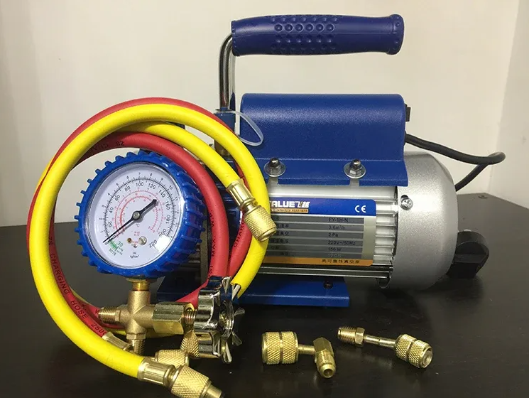 Если вы заказывали установку кондиционера или только планируете это сделать, вряд ли задумывались о том, делают ли монтажники вакуумирование трассы. А это важный процесс, от которого зависит, как долго и насколько эффективно будет работать ваш кондиционер. Я занимаюсь установкой сплит-систем не первый год и не раз видел, к чему приводит экономия на этом этапе. Расскажу простыми словами, зачем это нужно, что будет, если монтажники пропустят вакуумирование, и как убедиться, что всё сделано правильно. Когда кондиционер устанавливают, внутренний и наружный блок соединяют медными трубками – это трасса, по которой циркулирует фреон. Эти трубки изначально заполнены воздухом, в котором есть влага, кислород и возможные загрязнения. Если не удалить этот воздух, могут возникнуть проблемы: Чтобы этого не произошло, перед запуском кондиционера из трассы удаляют воздух и влагу с помощью вакуумного насоса. Только после этого можно открыть краны и запустить фреон. Вакуумный насос. На первый взгляд, ко