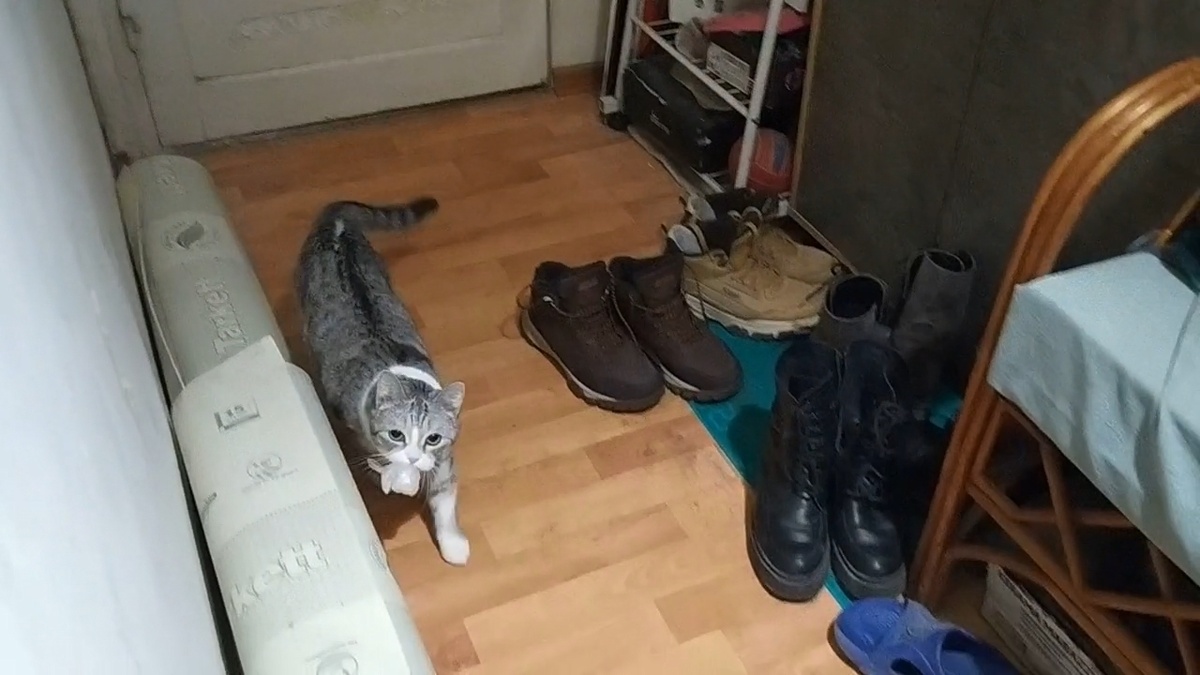 Тигруня думала, думала, дулась, дулась, да вдруг решила подружиться с нашим внуком. Лезла к нему на руки, ластилась, мурчала. Потом я показал внуку как играть с Тигрой в "принеси шуршащее", а сам пошел дружить к коту Беляшику. Он меня любит всегда.