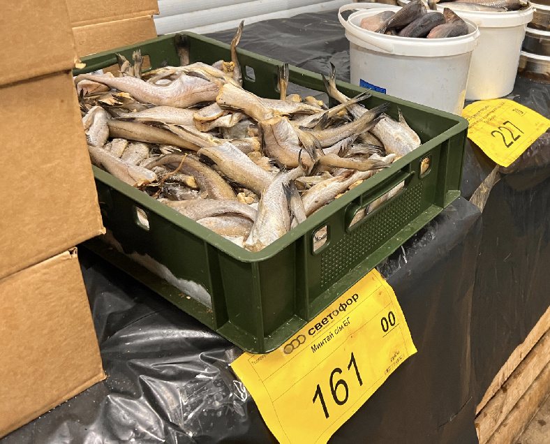 Минтай свежемороженый без головы. Цена 161 рубль за кг.