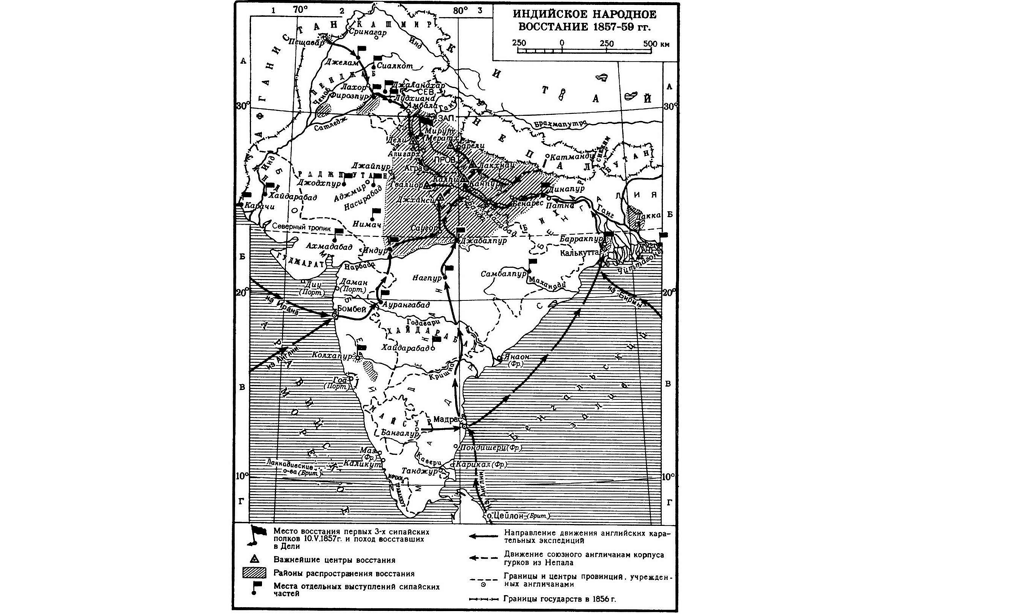 - Ағылшындардың өз қаражатымен жасақтаған үнді әскерінің өз қаруын жануарлардың майымен майлауы - отаршылдыққа қарсы көтерілістің басталуына түрткі болды.