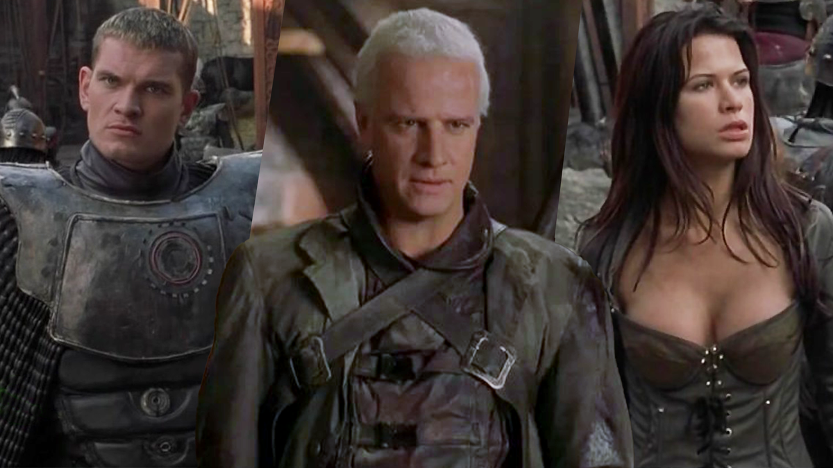 На у теперь суммируем данные. Брутальный персонаж-воин в исполнении Ламберта, тем более, что "Горец" ещё был популярен, грудастая Рона Митра, злодейка из Плейбоя, стимпанк крепость, солдаты с мечами, монстр, замесы, динамичные саундтреки. Да этот фильм просто не мог не понравиться подростку, и я неоднократно пересматривал кассету с ним.