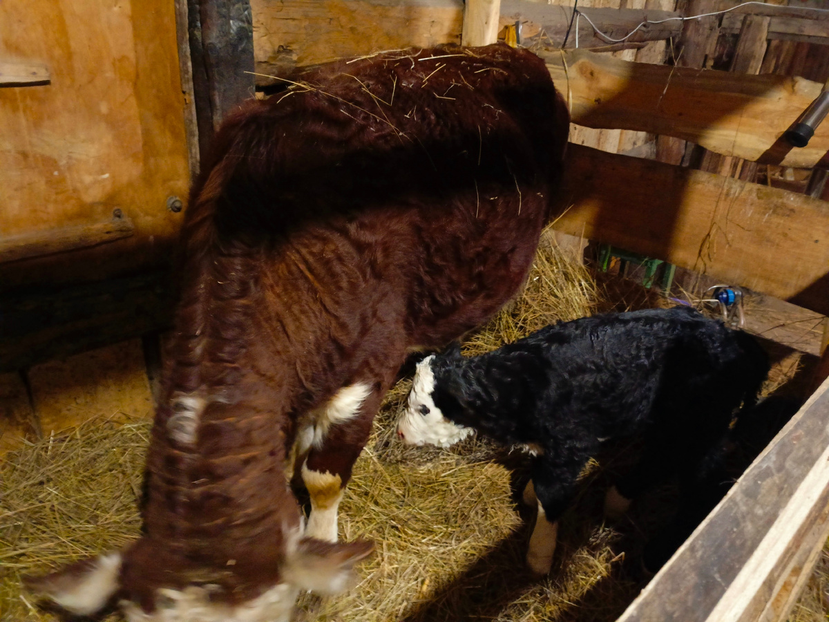 У Плюши молоко пришло. Ее телочка бодрее стало, но коряво на ножках - все-таки долго на морозе была. Как, что будет... 🤷♀️