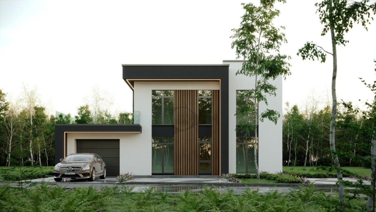 Современный двухэтажный коттедж «Ингви» — это 264 м² тщательно продуманного пространства, где каждая деталь гармонирует с принципами хай-тека: функциональность, инновации и стильная простота. Характеристики: - Общая площадь дома: 263,96 м² - Терраса: 33,87 м² - Балконы: 103,10 м² - Крыльцо: 6,10 м² - 4 спальни (площадь каждой от 13 до 24 м²), 3 санузла, гараж на 2 автомобиля (48,31 м²) Почему стиль хай-тека актуален? Хай-тек — это архитектура будущего, где форма служит функции. В проекте «Ингви» это проявляется через: Четкие геометрические линии — отсутствие лишних деталей и акцент на пропорциях. Современные материалы: сочетание стекла, металлических конструкций и бетона с текстурной отделкой. Панорамное остекление — окна наполняют дом светом и визуально расширяют пространство. Энергоэффективность: солнечные панели, система рекуперации тепла, LED-освещение. Как построить дом в Тюмени? Как построить дом в Москве? Готовые дома в Тюмени Готовые дома в Москве Земельные участки в Тюмени Зад