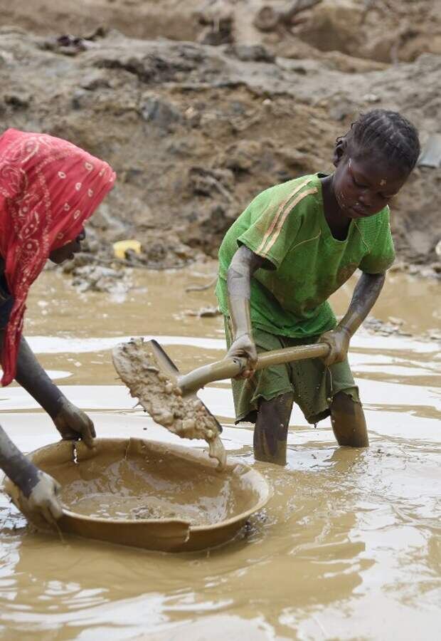 По данным на 2015 год, тысячи детей в возрасте от 15 до 17 лет задействованы на опасных участках, в том числе на мелких месторождениях, где используется труд детей в возрасте 9 лет. Власти Ганы закрывают глаза на использование детского труда, так как иностранные компании всё равно покупают у них драгметалл, а значит, они не испытывают никакого давления извне. Именно дешёвая ртуть используется в качестве химического элемента, чтобы отделить золото от других минералов. В больших дозах она может повредить центральную нервную систему ребёнка и вызвать разрушение мозга. Для детей это особенно опасно, так как их организм в этом возрасте только формируется. Трудятся и мальчики, и девочки.Обычно работать они начинают с 10-12 лет. В 30 лет они выходят на пенсию, хотя до этого возраста доживает половина. А 50 лет человек считается глубоким стариком и таких единицы. Например,родители в Конго отдают девочек "в жены" добытчику за выкуп. А девочки, а точнее "жены" трудятся на своего "мужа"