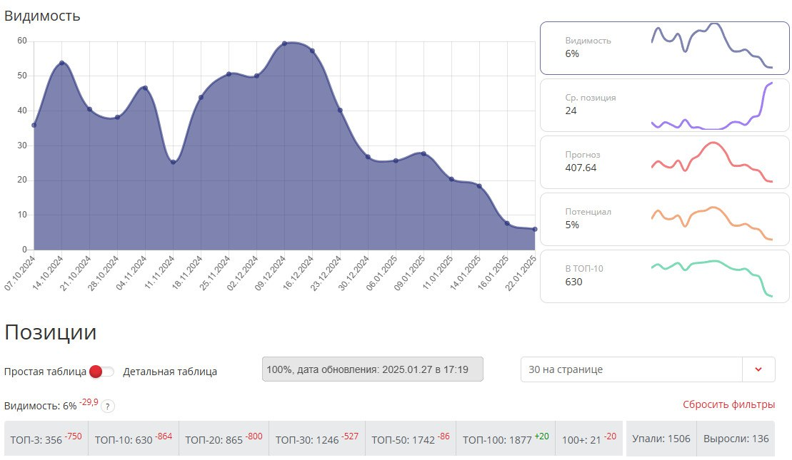 Делюсь результатами сайта после остановки накрутки поведенческих факторов. Большинство из вас предсказывало, что будет полный трэш. Так и вышло :) 💡Все подробности у меня в телеграм-канале: https://t.me/craftseo Смотрите, что получилось на 22 января: Позиции сдулись: А что с трафиком и конверсиями? 💡 Главный вывод: связь между накруткой ПФ и трафиком есть, причем она прямая. Чем больше запросов из кластера вы накручиваете - тем сильнее взаимосвязь. На мой взгляд, если уж крутить - то максимально широко по всем запросам кластера. P.S. Да, я знаю что многие предупреждали о последствиях. Но лучше один раз увидеть, чем сто раз услышать, верно? 😉
