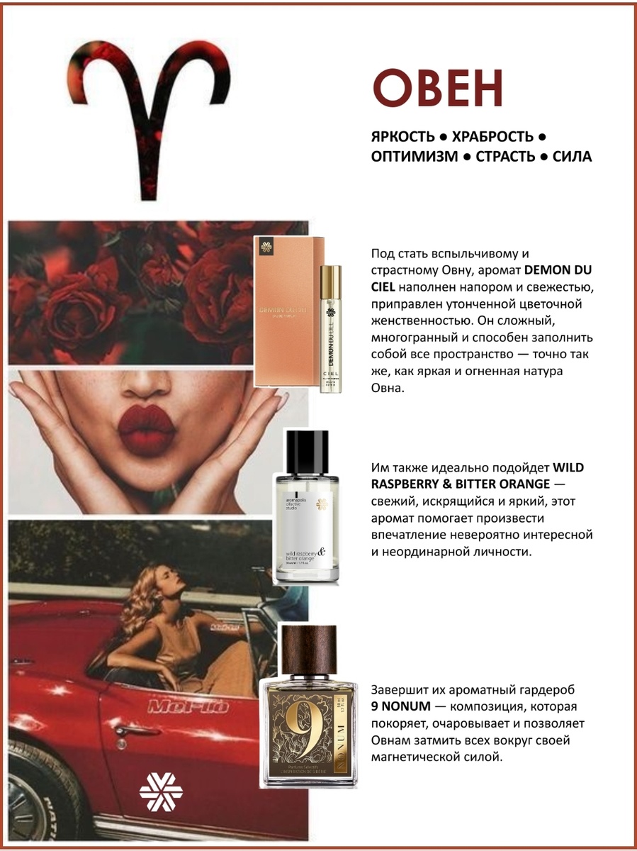 ▪️Хотите обновить свою коллекцию духов, но сомневаетесь, какие духи подойдут вам, а какие нет? ▪️Хотите понять, какие ароматы, действительно, ваши, какие лучше всего подчеркнут ваш образ? ▪️Сориентироваться поможет… ваш знак Зодиака. Действительно, знак Зодиака и парфюмерные предпочтения неразрывно связаны. ✨ Мы попросили нашего парфюмера и аромапсихолога Марию Трофимову составить парфюмерные рекомендации на 2025 год для каждого знака Зодиака. Теперь вы сможете не только подобрать идеальный парфюмерный гардероб для себя, но и выбрать удачный ароматический подарок для вашего близкого человека. Ознакомиться с составом парфюмерии рекомендуем на сайте Там вы узнаете содержание верхних нот, средних и шлейфа каждого флакона. А также полное описание настроения аромата. Карту зарегистрировать можно по этой ссылке