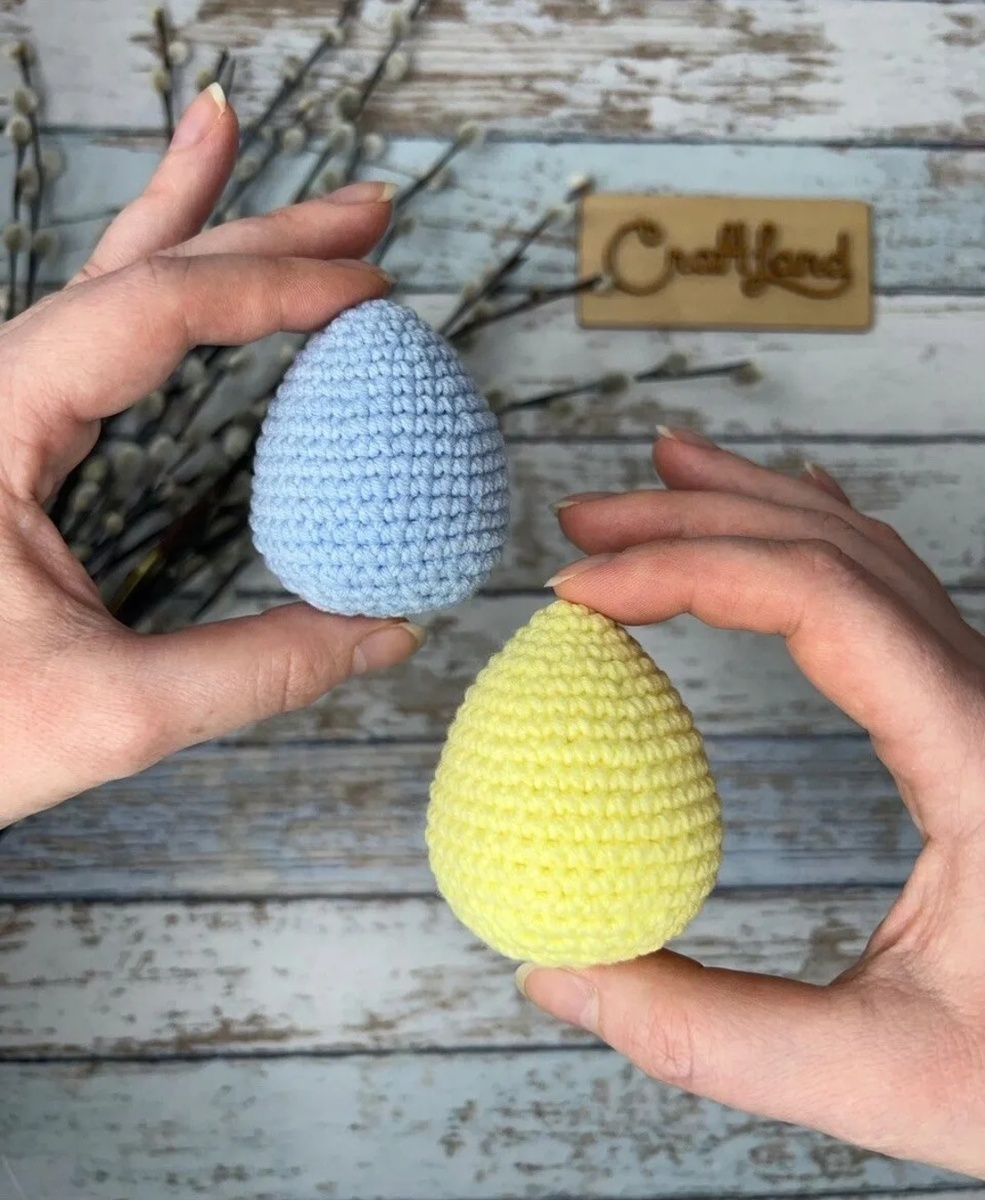 Свяжем яйца к Пасхе? Кто-то красит, кто-то вяжет, а кто-то делает и то и другое ☺️ В этой статье я расскажу о том: ✓ какие материалы я использую для вязания яиц, ✓ поэтапное описание вязания объемного яйца. Для вязания яиц вам понадобится: ✓ наполнитель (холлофайбер или синтепух). ✓ пряжа (я вяжу из пряжи yarn jeans, 50гр. на 160 метров) ✓ крючок (у меня №2,5) ✓ ножницы. Поэтапное описание вязания крючком яйца: Условные сокращения: КА - кольцо амигуруми, СБН - столбик без накида, приб. - прибавка (2 СБН из одной петли), убав. - убавка (2 СБН из 2 петель), * - количество повторов элементов. 1 ряд: 6 СБН в КА 2 ряд: 6 приб. (12 СБН) 3 ряд: 12 СБН 4 ряд: (1 СБН, приб.)*6 (18 СБН) 5 ряд: (2 СБН, приб.)*6 (24 СБН) 6 ряд: 24 СБН 7 ряд: (3 СБН, приб.)*6 (30 СБН) 8 ряд: 30 СБН 9 ряд: (4 СБН, приб.)*6 (36 СБН) 10-15 ряд: 36 СБН 16 ряд: (4 СБН, убав.)*6 (30 СБН) 17 ряд: (3 СБН, убав.)*6 (24 СБН) 18 ряд: (2 СБН, убав.)*6 (18 СБН) 19 ряд: (1 СБН, убав.)* 6 (12 СБН) Набейте яйцо наполнителе