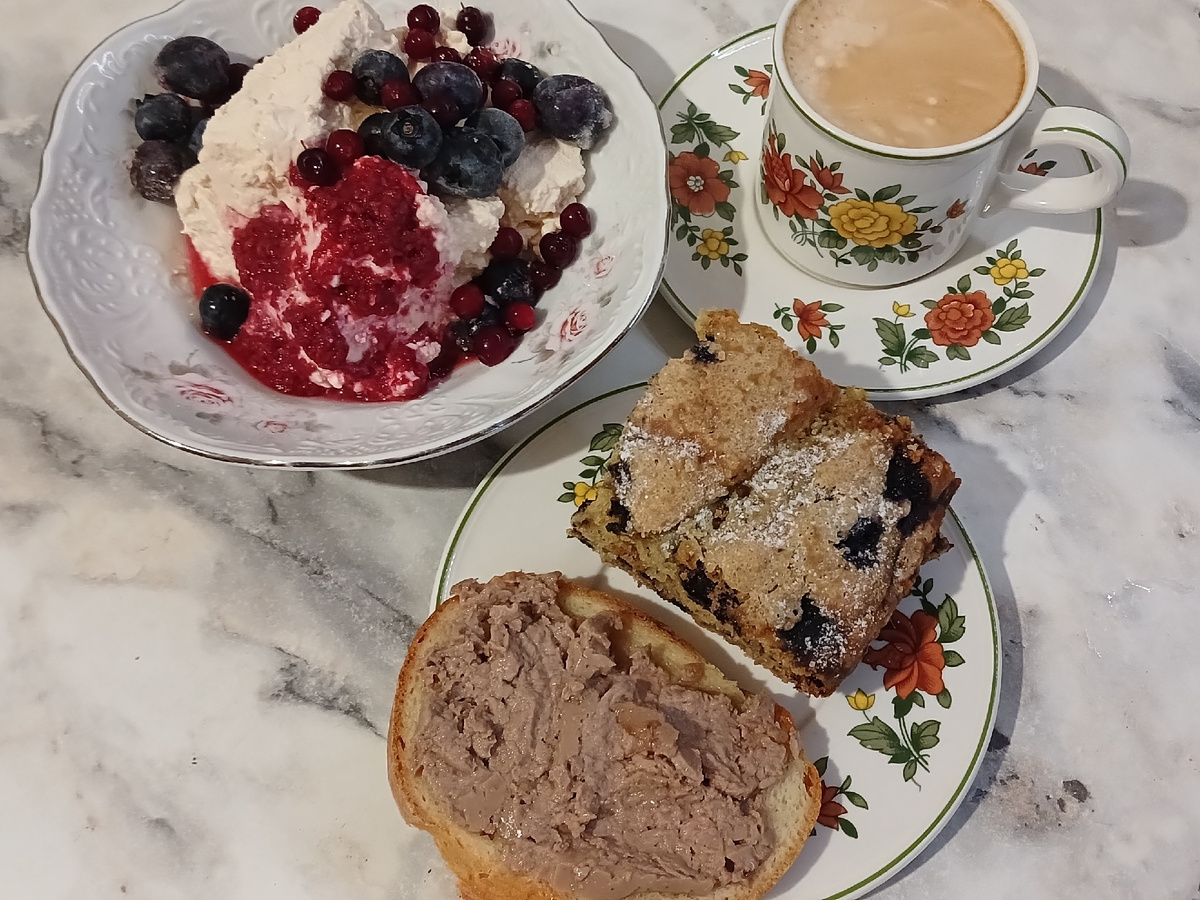 На завтрак сегодня был творог. Покупала во Вкусвилл пластовой по акции "6 скидок", скидка была 20% от обычной цены. Себе взяла пластовой из топленого молока, а второй был обычный пластовой 5%. В творог добавила пюре из малины и голубику. А к кофе - бисквит с черникой. На обед сварила суп из банки рыбных консервов и зеленого горошка. Очень вкусно получилось! В суп добавила последнюю свою домашнюю адыгейскую соль, нужно сделать новую партию. Она и цвет красивый придает блюдам за счет куркумы, и вкусный вкус 🤩 К супу на обед салат из моркови с плавленым сырком и чесноком. Уходит этот салат на ура всегда у нас. И зафиналили банку с печенью минтая. Надо сказать, довольно выгодная история, т.к. на бутерброд идет совсем не большое количество (иначе будет жирно уже слишком). И очень вкусно и полезно. У меня была одна такая банка в запасе, буду искать и еще покупать. Чашка кофе с конфетками на десерт На ужин котлеты из филе бедра индейки. Котлеты - это домашняя заготовка, они в овсяными