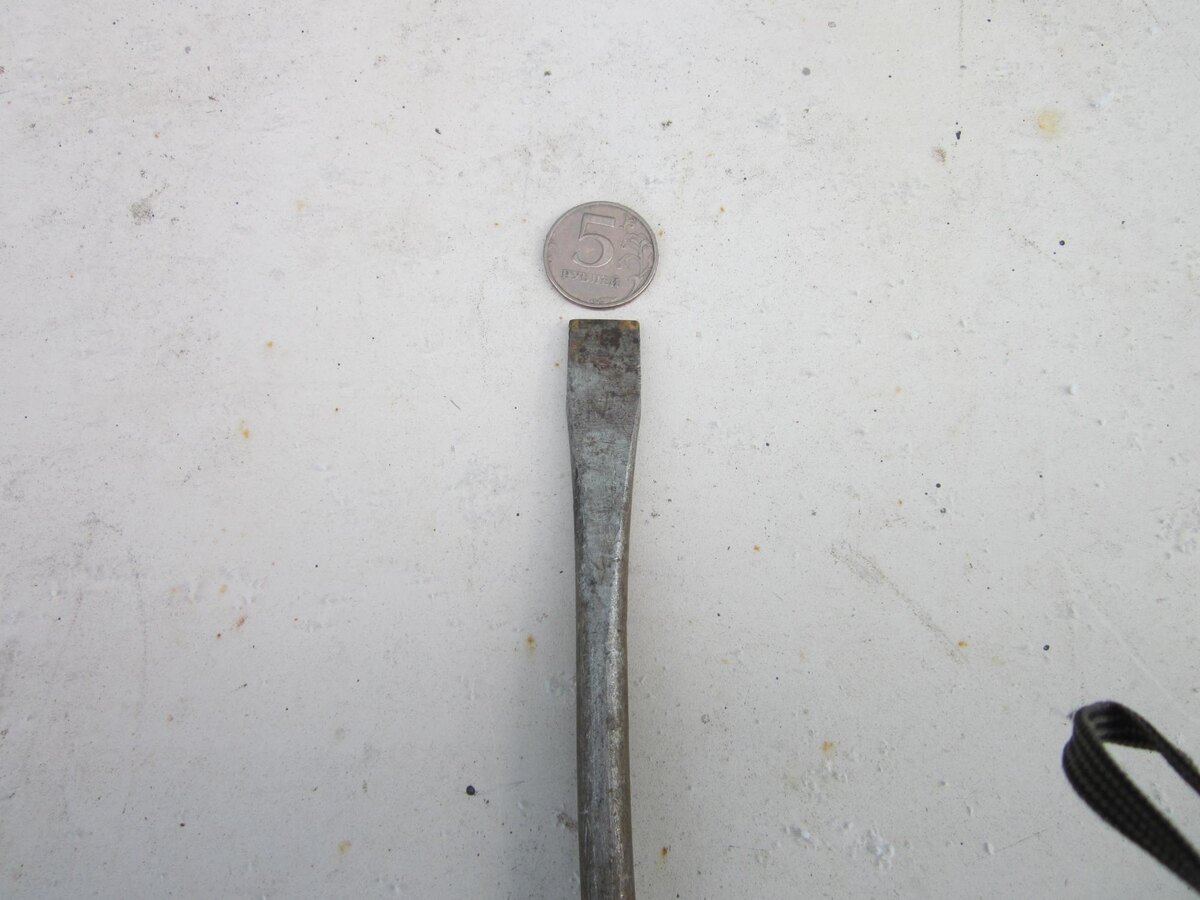 Ниже такая заводская отвёртка из мягкой стали. Годится только для откручивания пробок аккумулятора и втулки сифона раковины на кухне. Толщина стержня 8 мм, но гнётся от лёгкого нажатия одной рукой