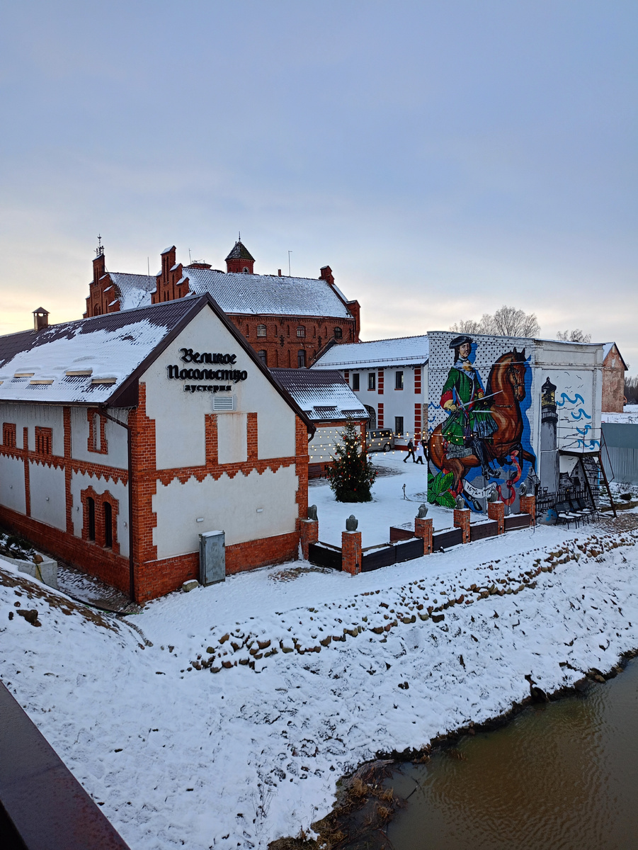 И оттуда мы собрались в обратную дорогу, еще остановились, чтобы снаружи взглянуть на замок Георгенбур. Первое укрепление построено в 1264 году на старом прусском городище Капзовин рыцарем Немецкого ордена Хартманом фон Грумбах и названо в честь святого Георга