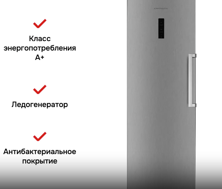 Морозильная камера Kuppersberg NFS 188 X представляет собой высокотехнологичное и практичное устройство, идеально подходящее для хранения продуктов на длительный срок. Размеры - 188.5 х 59.5 х 66.6 см. Эта отдельностоящая модель удобно вписывается в различные кухонные пространства, даже в ограниченные по площади помещения. Стильный корпус из нержавеющей стали не только придает морозильнику элегантный внешний вид, но и делает его более прочным и устойчивым к механическим повреждениям. Дверной упор расположен слева, но его можно перевесить на другую сторону, что делает установку и использование морозильной камеры максимально гибким. Управление прибором осуществляется с помощью сенсорных кнопок, а LED-дисплей на дверце позволяет оперативно контролировать параметры работы устройства и удобно настраивать нужные режимы. Это особенно важно для тех, кто ценит интуитивно понятное управление. Морозильная камера оборудована системой автоматического размораживания, что избавляет от необходимости