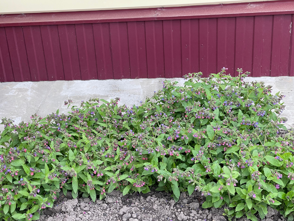 Одомашненная лесная жительница. Появилась на моем участке в те времена, когда наполняла осваиваемые земли, чем могла. До чего дотянулись шаловливые ручки цветанутого человека и лопата при этом имелась, то и притащила себе в сад. Говорят, может разрастаться сильно. У меня ведет себя прилично. Сидит в углу, ограничена другими растениями. Выглядывает на свет божий раньше других. Опережает ее на пару дней только другая лесная жительница сцилла. В аномально теплом 2020 году медуница показалась из земли 6 марта. Причем, первыми на свет показываются именно бутоны с цветами. Со временем образуется куртина, покрытая цветочками розовыми, синими, фиолетовыми. В одном соцветии цветки с разным окрасом. Такая особенность. Все потому, что цветок по мере цветения меняет свой цвет.