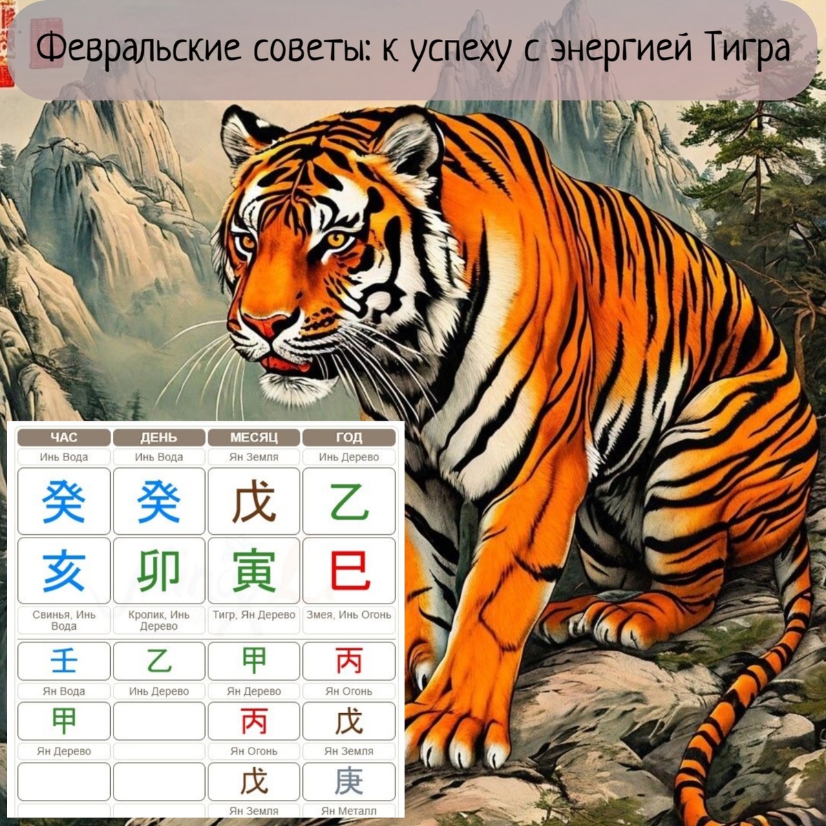 «Есть два способа прожить жизнь. Первый — как будто чудес не существует. Второй — будто кругом одни чудеса!», — А. Эйнштейн. Друзья, первый месяц по китайскому календарю «Земляного тигра», противоречивый с одной стороны мы наблюдаем столкновение Столпа часа Земная ветвь 亥 с Столпом года Земная ветвь 巳. А мы привыкли думать о столкновениях «плохо», т.е. планы, идеи сложно реализовать. А если обратить внимание, что стихия Воды во внутренней части, проявлена в Небе, два Небесных ствола 癸 и поддержаны «корнем» в Скрытых Небесных стволах, энергетически сильнее, чем стихия Огня, которая не проявлена в Небе (Небесных стволах). Можно сделать вывод, что столкновение, наоборот может дать дополнительный импульс к активным действиям, тем более сталкиваются Путешествующие лошади. Люди, рожденные в годы Крысы, Обезьяны и Дракона, имея намеренья карьерного роста или продвижения товаров (услуг), рекомендуется воспользоваться, возможностями месяца, для начало старта. Так же, как и все остальные зверки,