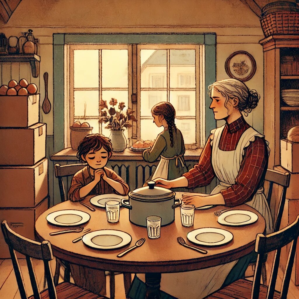 – Мам, а куда мы сложили приборы? – спросила девочка, оглядывая небогатое убранство кухни.