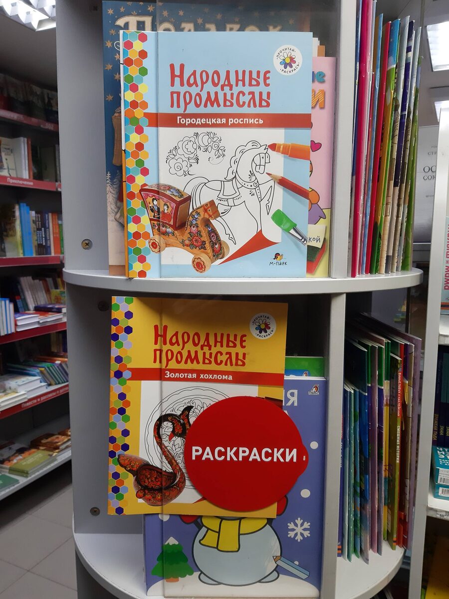 Книжки-раскраски Народные художественные промыслы (Гжель, Хохлома, Дымковская игрушка) с моими текстами выставлены в магазине Москва.