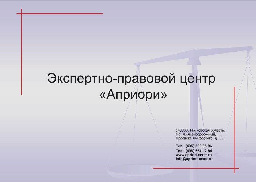 О важном Мы живем в эпоху технологий и это, несомненно, является преимуществом. Однако обратной стороной является необходимость обращения с технологиями при помощи специалистов. В юридической практике такими специалистами являются эксперты – люди имеющие знания и опыт в конкретных отраслях, но один человек не может знать все, поэтому специализированные организации объединяющие таких специалистов могут не только сэкономить время и деньги, но и нервы, что согласитесь вовсе не маловажно. Поэтому представляю Вам проверенную организацию Экспертно-правовой центр «Априори», к специалистам которой я постоянно обращаюсь сам и направляю друзей, для получения экспертного заключения при подготовке к суду или для определения возможности обращения в суд. Уверен, что сотрудничество будет полезно и выгодно. Закон защищает того, у кого хороший юрист.