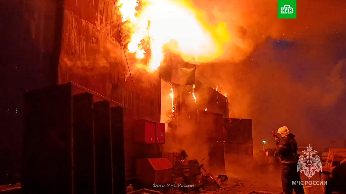 [ Смотреть видео на сайте НТВ ] В Пскове пожарные ликвидируют возгорание в автосервисе. Как сообщили в МЧС России, загорелось здание на Дачной улице. Площадь пожара достигла 800 «квадратов». Огнеборцы эвакуировали из гаражей шесть газовых баллонов. К тушению привлечены 19 специалистов и шесть единиц техники. Открытое горение уже ликвидировано. [ Смотреть видео на сайте НТВ ]