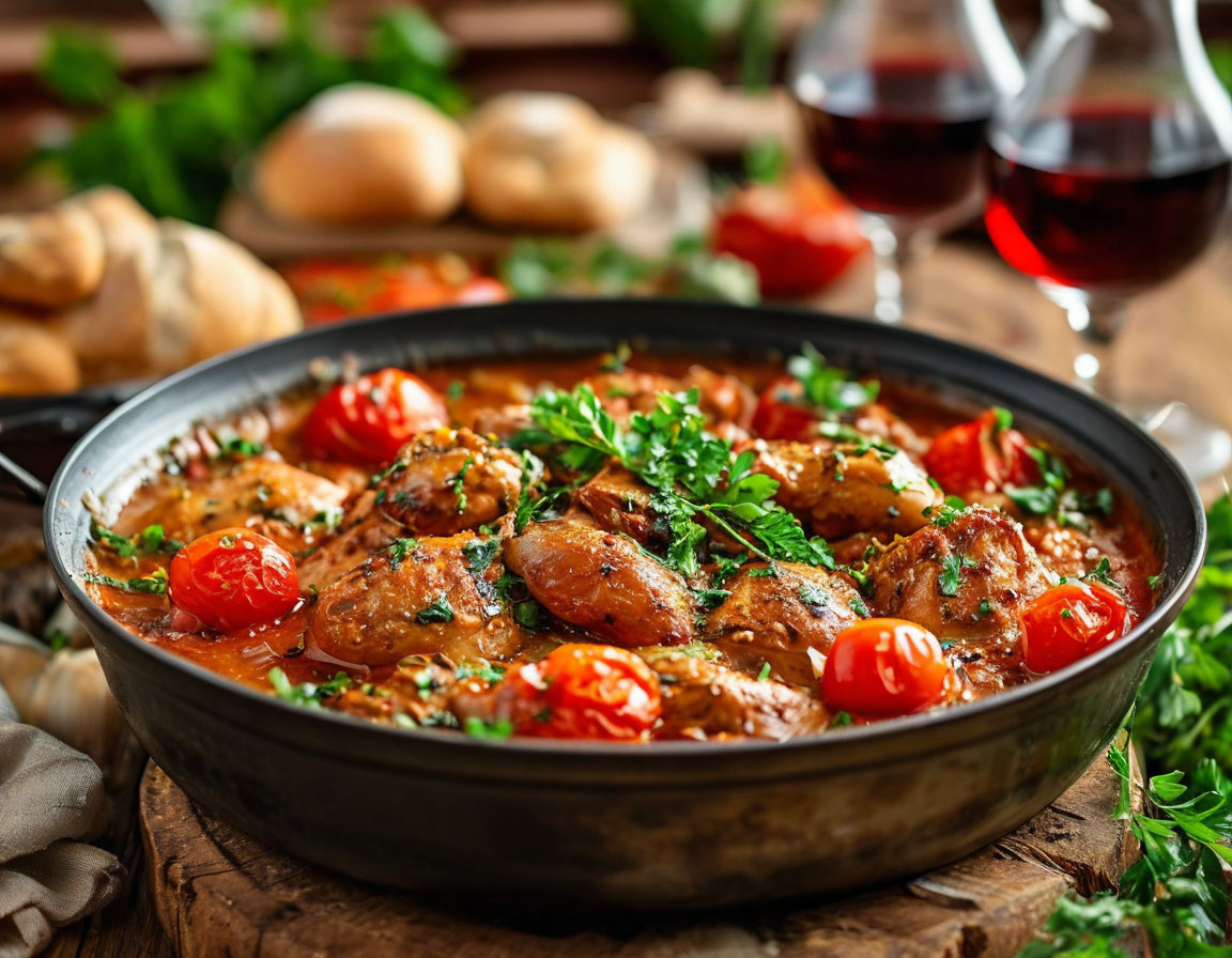 Чахохбили — это традиционное грузинское блюдо, которое готовят из курицы с ароматными специями, луком и помидорами. Оно получается очень насыщенным, пряным и невероятно вкусным. Главное в этом рецепте — правильные специи и терпение, ведь тушение делает мясо мягким и сочным.