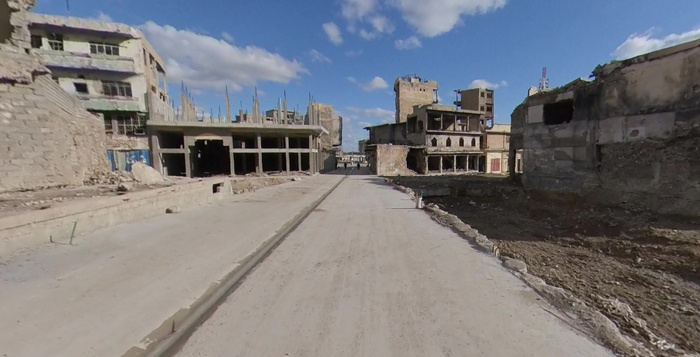Несмотря на то, что боевые действия в городе закончились в 2017, некоторые центральные улицы до сих пор выглядят как-то так: