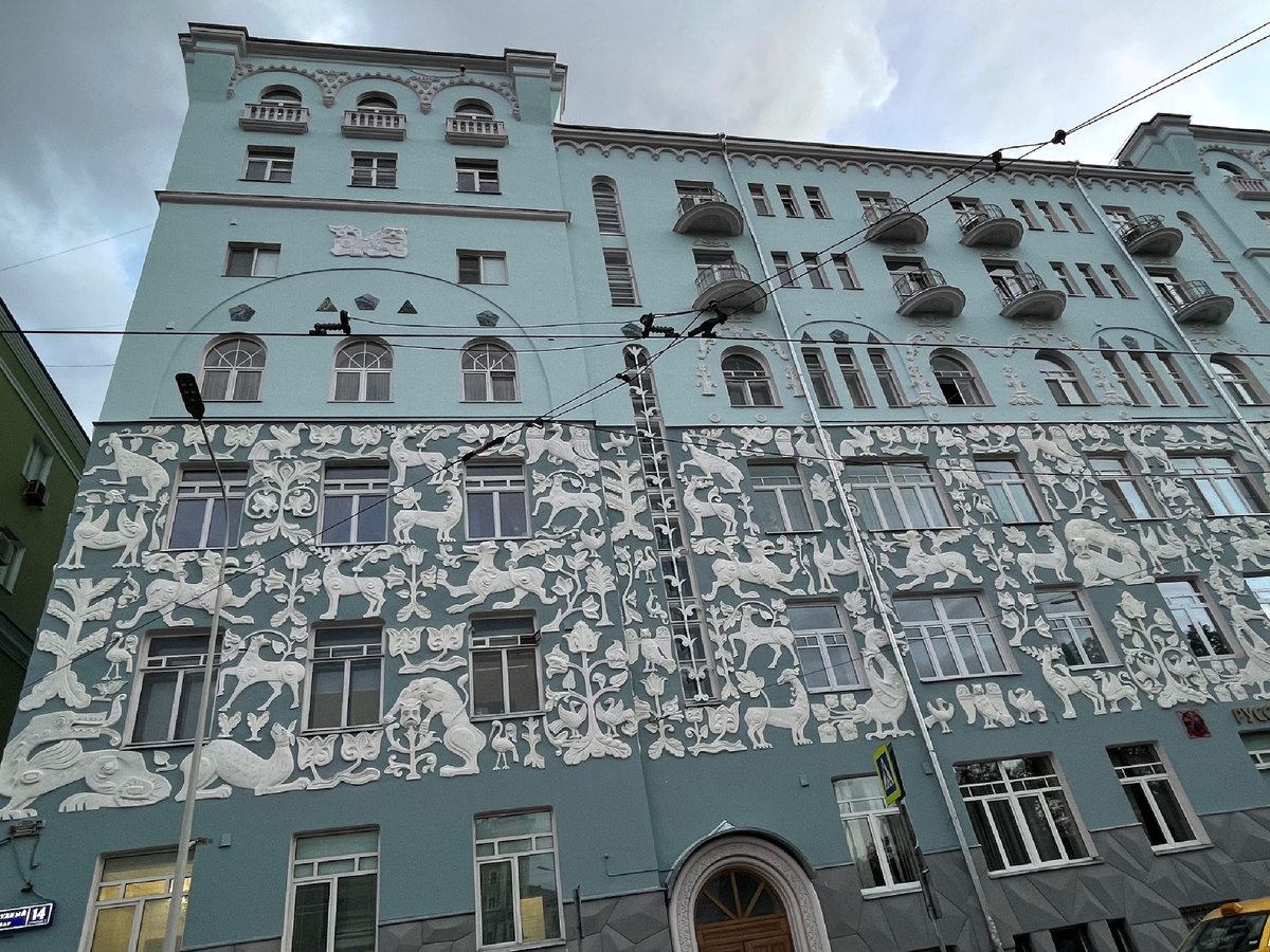 Здание примечательно тем, что его фасады оформлены уникальными барельефами работы архитектора и художника Сергея Вашкова. По его эскизам на третьем и четвёртом этажах дома выложен «ковёр» из терракотовых барельефов, изображающий сказочных зверей, птиц и растений. Рассматривать этот декор можно долго - это настоящая сказка. Автор вдохновлялся барельефами Дмитровского собора во Владимире.