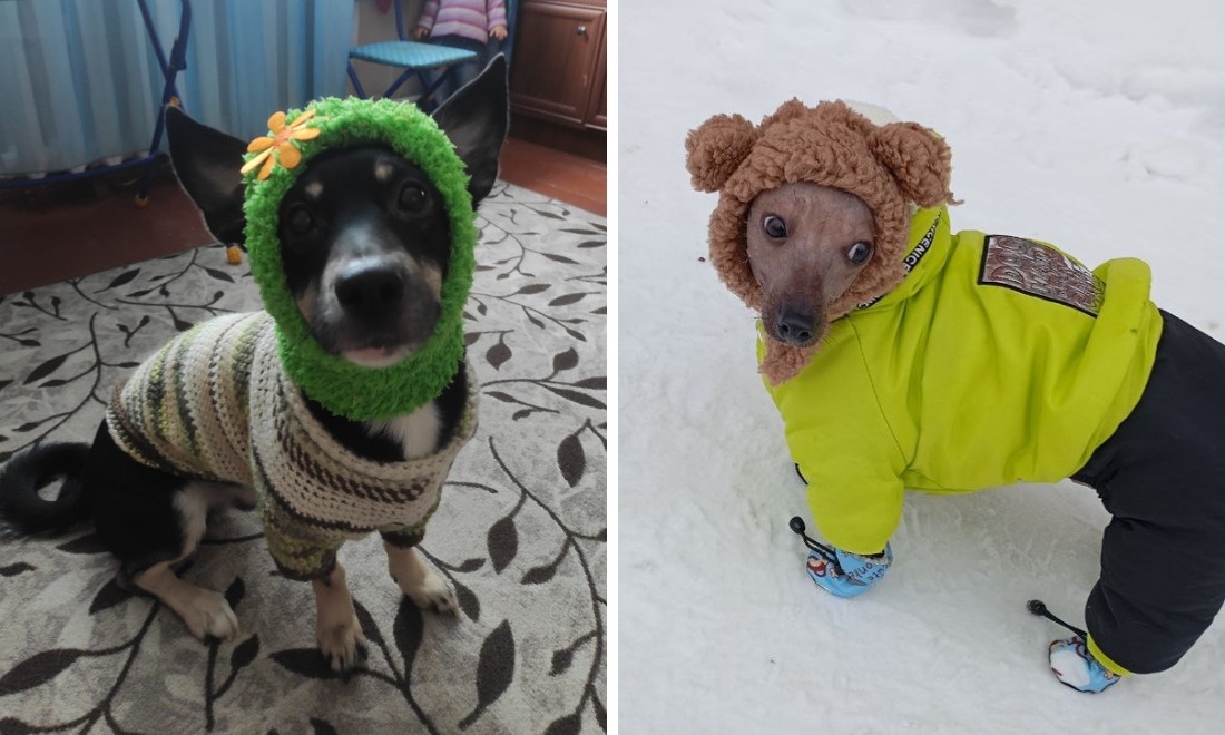 Милые фотографии питомцев в зимней одежде публикуют новосибирцы