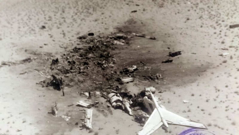 В 23:46 лайнер почти без крена на огромной скорости упал хвостовой частью на землю, развалился на части и сгорел. Погибли все. Катастрофа произошла в пустынной местности, доступ к которой затруднен. Никаких обелисков на месте крушения не установлено.