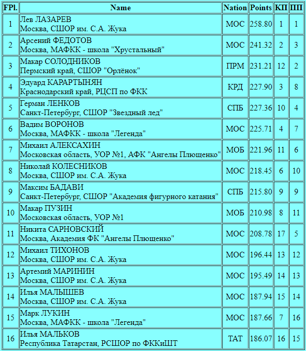 Давайте теперь посмотрим кто из юношей прошел отбор в предстоящий финал Гран-при :