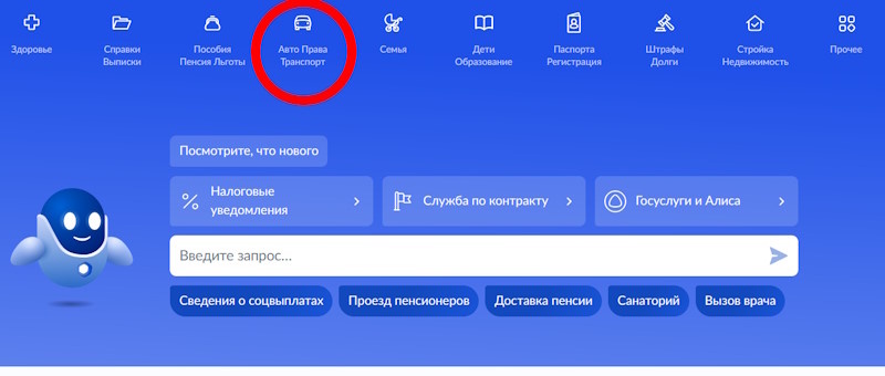 Первым делом заходим на портал, входим в личный кабинет (вы должны быть зарегистрированы на сайте и учетная запись должна быть активирована, иначе записаться в ГИБДД не получится) и находим в меню вкладку «Авто Права Транспорт». На сайте вкладка находится вверху экрана, а в мобильном приложении внизу.