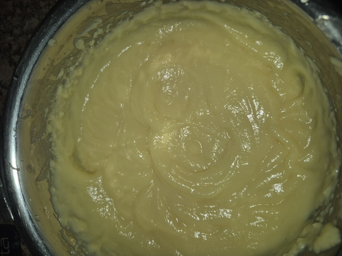 - 100 грамм сливочного масла Желтки, сахар и крахмал взбить миксером. Молоко вскипятить. В массу с желтками добавить три столовые ложки молока, взбить еще раз. Плиту переключить на средний огонь и в кипящее молоко тонкой струйкой влить нашу массу из желтков, при этом постоянно помешивая получаемую массу венчиком. Варим на малом огне, постоянно помешивая, до загустения. Остужаем и добавляем размягченное сливочное масло. Крем готов!
