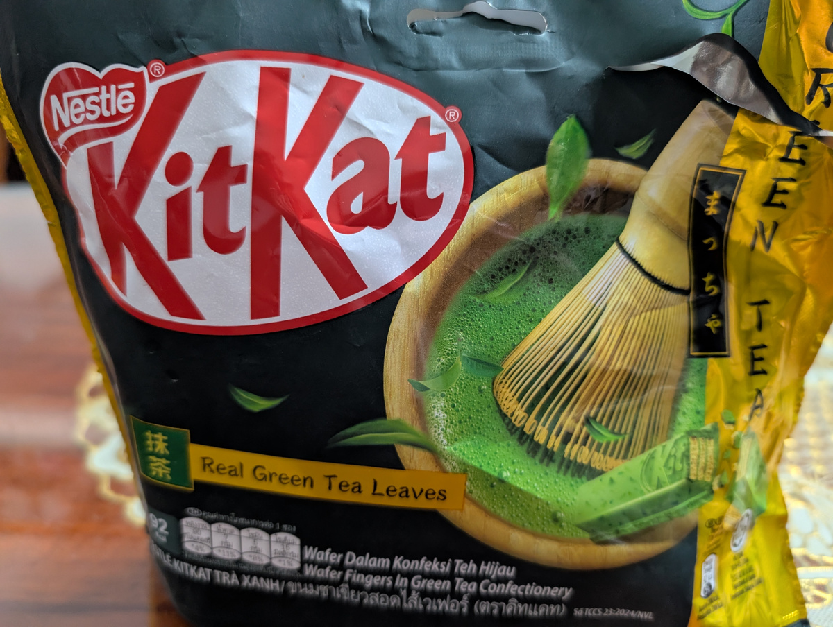 Это не реклама, а рассказ об одной неоднозначной, меня лично удивившей вкусняшке. Может, я отстала от жизни, и вы уже давно знаете, покупаете, едите и любите такое, а я вот нет. Или в России из-за санкций вообще не продается продукция компании Nestle? Вот такие упаковки Кит Кат с зелёным чаем часто покупает Вика, сводная сестра моего сына, которая у нас сейчас гостит. Молодежь, что называется, в тренде Внутри 8 небольших вафелек на один перекус. 8 вафельных палочек в зелёном чае вместо шоколада. Они реально зелёные на вид. На вкус зелёный чай тоже хорошо ощущается. А вот вкуса шоколада нет совсем, что очень непривычно и для меня сплошное разочарование. Продукция изготовлена в Тайване. Пишите, если пробовали такие, как вам? Очень интересно ваше мнение