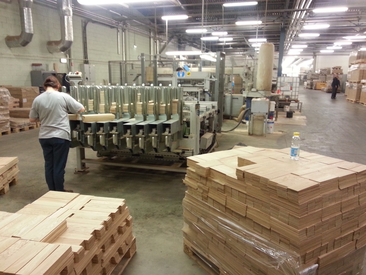Первый этап производства любого стройматериала – это подготовительные работы. При изготовлении паркета они заключаются в выборе и сортировке в цеху, где заготовка из ценных пород дерева на особом станке была распилена на части с заданной длиной, досок, часть которых пойдет затем на изделия класса премиум, а часть – на паркет бюджетного сегмента. Понятно, что для дорогого покрытия используются более гладкие древесные заготовки с минимумом дефектных мест.