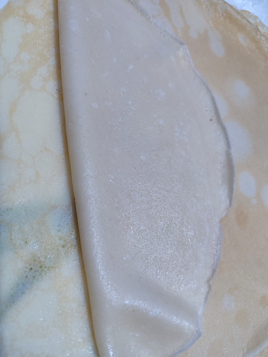 Блинчики мы обжариваем всего с одной стороны.