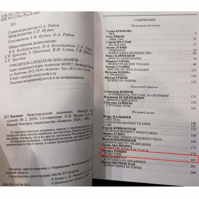 Всем привет, други-вуки. Это не полезный пост, и познавательного в нём не будет. И йумора тоже не будет. И стёба. Будут хвастушки! Крч, некоторое время назад меня сподвигли на отправку старого (относительно) рассказа в журнал. Отправил несколько работ в разные места (в большинстве своём интернет-издательства), и писал об этом в итоговом блоге за 2024 год. И вот наконец получил ответ. 1.02.25 пришёл по почте авторский экземпляр альманаха «Земляки», куда разместили рассказ «Попутчик» (в своё время вылетел со этапа проф.жюри НФ21). Отправлял я его в редакцию журнала «Нижний Новгород» (http://jurnalnn.ru/), но в их издательстве не только журналом живут, как оказалось. Так что рассказ приняли и напечатали. С авторским экземпляром, без гонорара и без моих материальных влияний. О чем это говорит? Вероятно, о том, что скилл уже достиг определённой минимальной планки качества, так что вертать всё взад уже поздно. А то за свой счёт печататься – это не торт… По итогу: ссыль на сам альманах туть (