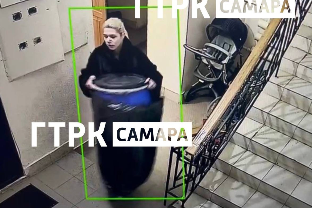 На изображении запечатлена Екатерина Бельская, которая выносит пластиковую бочку из подъезда дома своих бабушки и дедушки – Натальи и Виктора Тархова, бывшего мэра Самары. По данным следствия, она подозревается в ужасном преступлении: ей вменяют убийство и расчленение двух пожилых людей, после чего она поэтапно выносила части тел из квартиры, используя такси. Для сокрытия следов преступления, как утверждают эксперты, Бельская приобрела химические вещества и пластиковые бочки, аналогичные тем, что видны на фото.