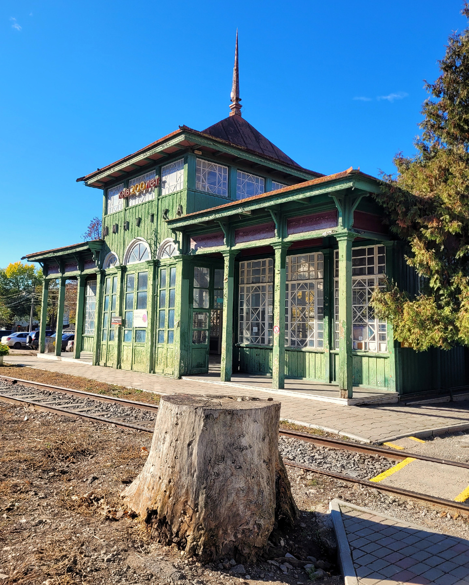 «Станция есть под названьем «Минутка» — мимо бегут, торопясь, поезда. И на станции той так легко разминуться, так легко разминуться нам с тобой навсегда...» Тест на возраст))) Помните эту чудесную песенку из советского прошлого? Я, честно говоря, не помнила, но читатели подсказали. ...рассказать ещё о нескольких зданиях, без которых Кисловодск уже и не представить. Вот для начала здание железнодорожной станции «Минутка» — деревянное, но при этом очень лёгкое и воздушное. Ему больше 100 лет, и история с ним связана замечательная — оно могло никогда и не появиться. ...казаки. Те узнали, что железка пройдёт из Минвод напрямую до центра Кисловодска — не останавливаясь на окраине в их станице. И смогли убедить начальство в необходимости дополнительной станции — с условием, что поезда будут останавливаться хотя бы на одну минутку. ...просто не имела права не появиться. Надо же где-то пить минералку. Правда, Федя мой не оценил. Сказал — фу, какая гадость))) Но это так — мелочи, конечно. Здани