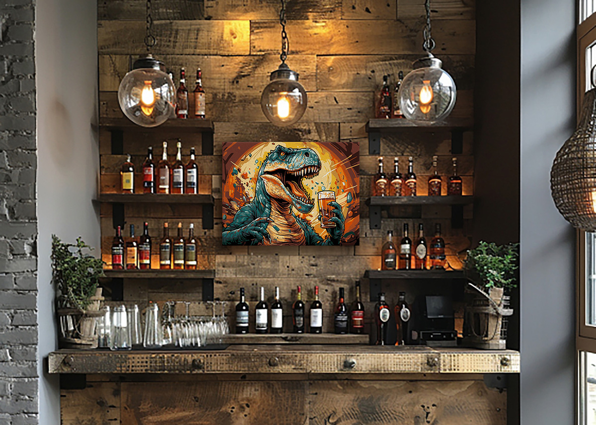 На фото картины: «Пивозавр», «Грампластинки», "Разноцветный космос", «Серебряный рыцарь»