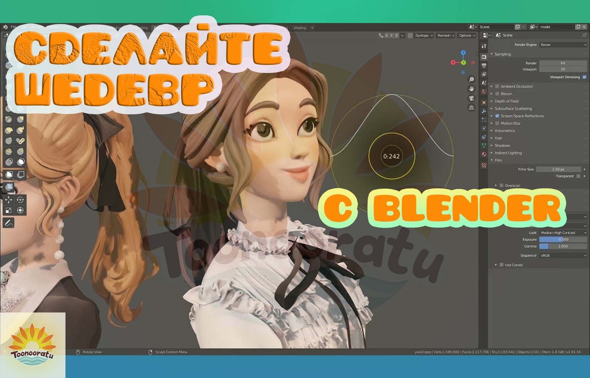 Он предлагает широкий спектр возможностей, включая моделирование, рендеринг, текстурирование, анимацию, скульптинг и постобработку.