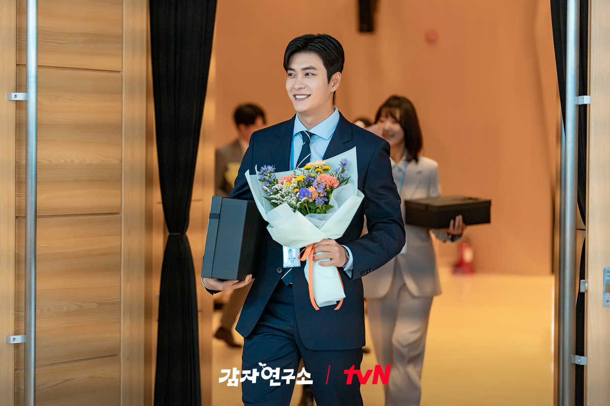 Новая дорама выходного дня телеканала tvN «Картофельная лаборатория» представила первый подробный взгляд на персонажа Кан Тэ О ! «Картофельная лаборатория» — новая романтическая комедийная драма, действие которой происходит в сельском институте исследований картофеля. История повествует о Ким Ми Кён ( Ли Сон Бин ), исследователе, чья жизнь полностью вращается вокруг картофеля, и Со Бэк Хо (Кан Тэ О), холодном и принципиальном корпоративном директоре. Когда Со Бэк Хо неожиданно входит в мир Ким Ми Кён, эти двое оказываются втянутыми в бурный роман. Недавно выпущенные кадры запечатлели Со Бэк Хо в безупречном костюме с сияющей улыбкой. Держа букет цветов, Со Бэк Хо создает теплую и доступную атмосферу, но на самом деле он бессердечный человек, который следует только правилам. Таким образом, когда он не улыбается, он показывает свою суровую натуру, как показано в кадре, где он прижимает кого-то, источая большую харизму. Однако на другом фото Со Бэк Хо запечатлен растрепанным, совершенно