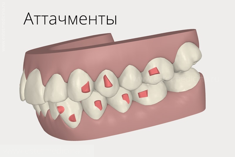 Представьте себе маленькие "ручки" из композитного материала, которые мы приклеиваем к зубам. Они помогают элайнеру зафиксироваться на зубах и эффективно их двигать. Это не что-то громоздкое или заметное — аттачменты делаются под цвет зубной эмали ( как и современные пломбы, даже из такого же материала) , так что даже при улыбке их почти не видно.