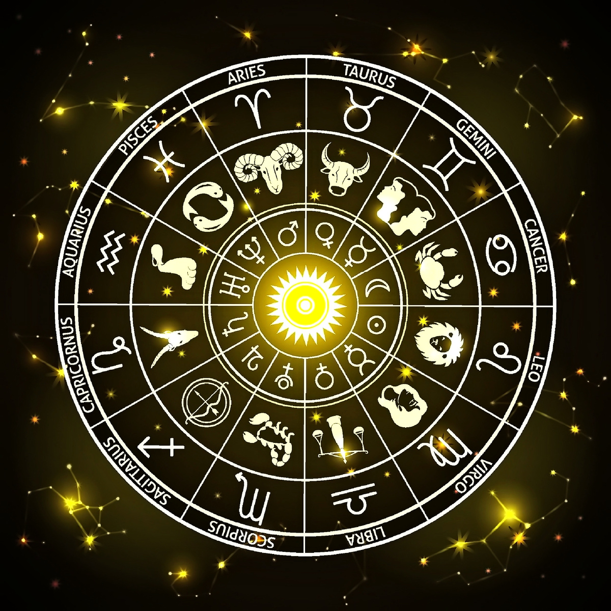 «ЗОДИАК (зодиакальный круг) [‹гр. zodiakos ‹zoon животное] — совокупность созвездий (зодиакальные созвездия), расположенных вдоль большого круга небесной сферы, по которому Солнце совершает видимый путь в течение года (СИС). Условно данный круг разбит астрологами на 12 секторов (знаков Зодиака) по 30 градусов каждый…