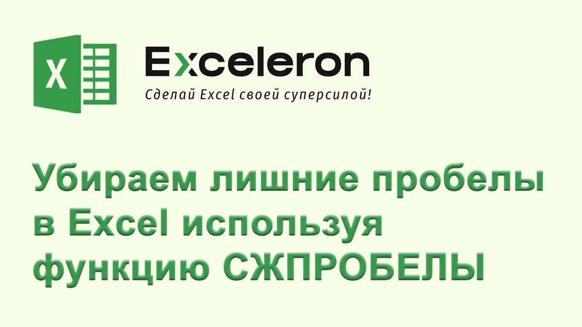 Функция СЖПРОБЕЛЫ удаляет из текста лишние пробелы, оставляя между словами только один пробел и удаляя все начальные и конечные пробелы.