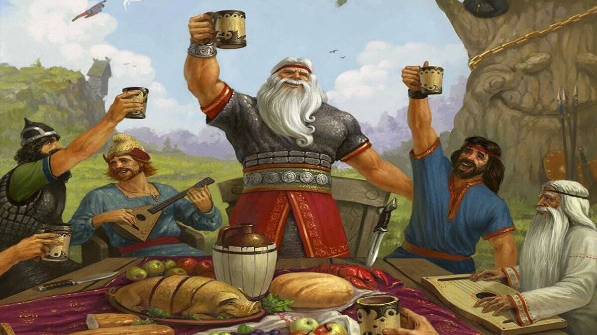 Ближе к концу застолья уместно хоровое и сольное исполнение песен, любимых виновником торжества или его Предками. Желающие выходят из-за стола и пляшут; песни и пляски естественно перетекают в игрища – важную составляющую большинства традиционных праздников.