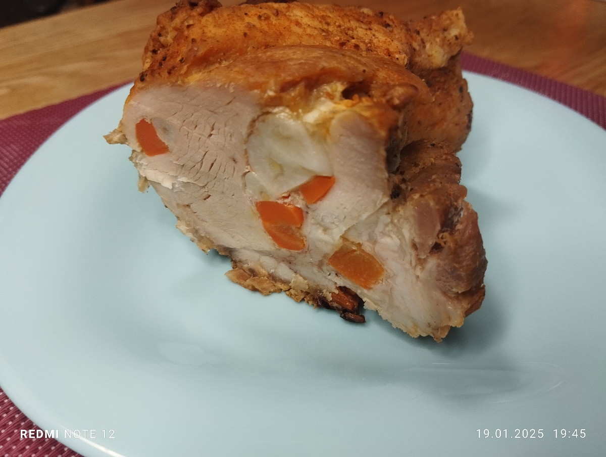 Расскажу как сделала первую удачную буженину! Без химии, на разрез красивые кусочки, не хуже чем в магазине! Пошаговый рецепт ниже! Обмываем кусок мяса- у меня лопатка, срезаем лишний жир. Морковь нарезаем соломкой, чеснок чистим В мякоти острым ножом делаем проколы и запихиваем в них морковку и чеснок. Получается вот так: С наружи натираем солью и приправами, соли не жалеем. У меня ушло где-то чайная ложка. Обмакиваем в подсолнечное масло ( по рецепту). Я помазала сверху. Заворачиваем в фольгу. В два слоя - не жалеем, чтоб сок не вытекал! Кладем в форму и убираем в разогретую духовку на 1 час на 200 градусов. Проверяем на готовность, сок должен быть прозрачный. Вытаскиваем из фольги и перекладываем в форму. Сок не выбрасываем, можно добавить в подливку или супчик. Убираем в духовку на 15-20 минут на зарумянивание, на 220 градусов. Достаем из духовки и даем остыть, лучше убрать в холодильник на ночь. Вот такой красивая буженина у нас получилась. Приятного аппетита! Подписывайтесь!