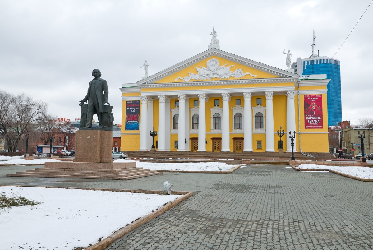 Пьяная компания выломала стрелу шлагбаума у театра в центре Челябинска