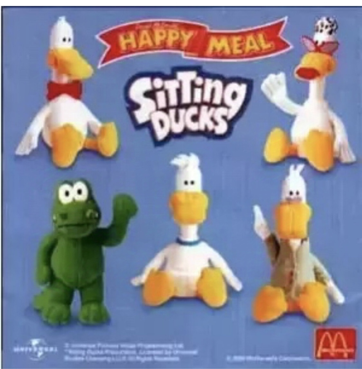 Это уже вторая серия игрушек "SitTing Ducks" в McDonald's. В первой герои одноименного мультсериала готовились к Хеллоуину. Тут же наши милые персонажи в своем повседневном образе. Не буду повторяться и рассказывать суть мультсериала, про это можно почитать тут: В данном наборе 5 мягких игрушек. Состав персонажей немного отличается от первой серии. Тут же у нас: 1. Билл 2. Утка (хозяйка бара) 3. Аллигатор Альдо 4. Утка 5. Утка Врач У меня собралась вся компашка! И вот они: Если интересуют другие игрушки из McDonald's , то переходим на Главную страницу