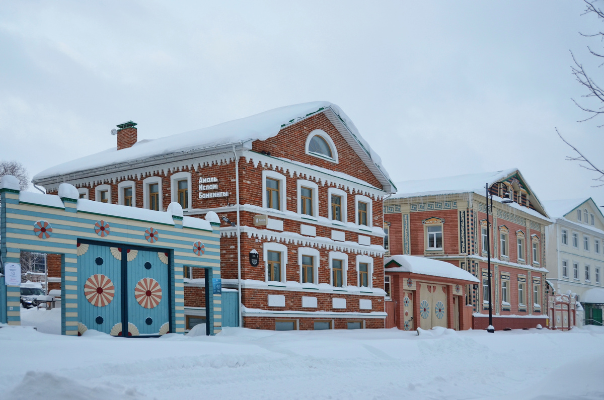 В слободе мечети стоят так тесно, что во время азана голоса муэдзинов сливаются в один. Местные говорят, что те, кто во время прогулки добрался до отдаленных Азимовской и Бурнаевской мечетей, тот увидел самые потаенные уголки этого исторического района Казани. Нам посмотреть, например, на Бурнаевскую мечеть не составило труда, поскольку квартиру мы снимали в доме по-соседству. А вот изучить подробно окрестности не получилось - слишком сложно было передвигаться по заснеженным улицам.