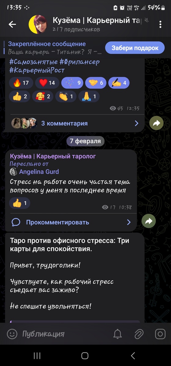 Привет, трудоголики! Чувствуете, как рабочий стресс съедает вас заживо? Не спешите увольняться! Давайте посмотрим, как Таро может помочь вам справиться с напряжением. Вот простой трехкарточный расклад "Антистресс": ☺️ Источник стресса ☺️ Ваша сила ☺️ Решение Например: 😊 Башня - возможно, вы боитесь внезапных перемен на работе? ❤️ Маг - у вас есть все инструменты, чтобы справиться! 👍 Умеренность - найдите баланс между работой и отдыхом. Приходите ко мне на расклад @kuzemataro, когда почувствуете, что стресс зашкаливает. Не позволяйте стрессу управлять вашей жизнью! Помните, карты не решат проблему за вас, зато помогут взглянуть на ситуацию под новым углом. Кстати, вот история про Максима, который приходил ко мне в тревоге, когда он устроился на новую работу. Мы проработали с помощью Таро его страхи и он стал наслаждаться карьерой и получать похвалу от начальника😊 #Стресс #Помощь #Карьера