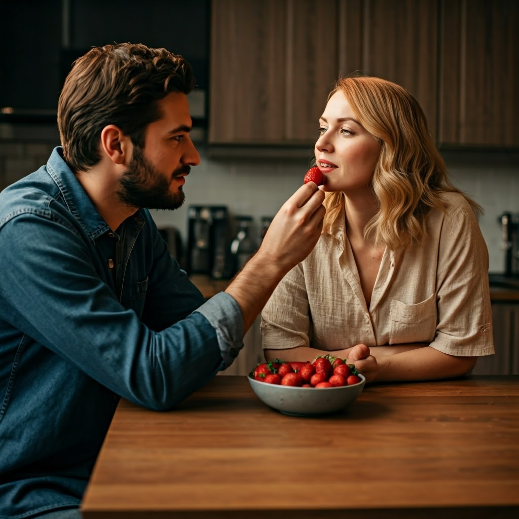 Она зашла домой и только хотела крикнуть мужу что она дома, но услышала странные звуки из кухни. Ксения тихо прошла во внутрь. На кухне был ее Андрей и какая-то брюнетка. Судя по всему, они только закончили заниматься тем чем обычно занимаются в спальне.