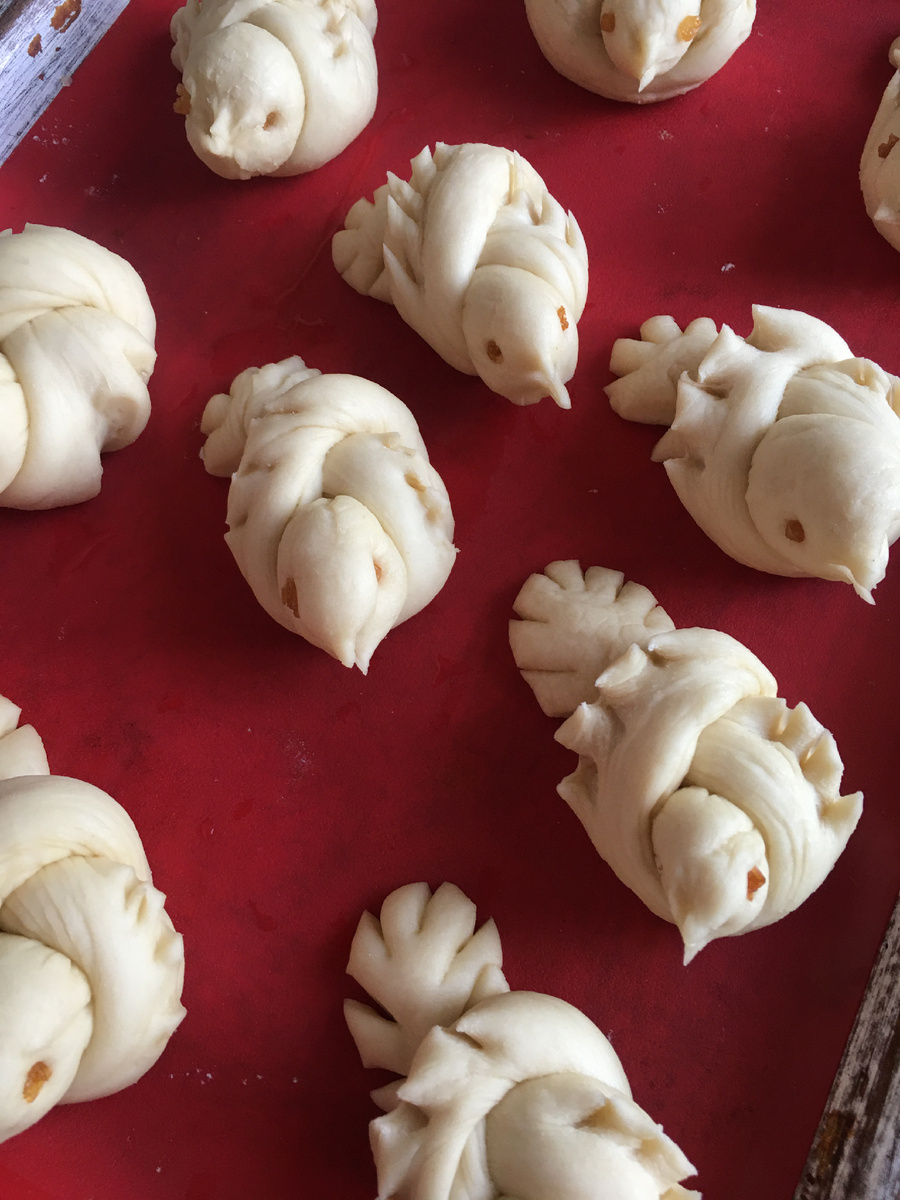 Глазки сделать из изюминок и перед выпеканием смазать крепким чаем с сахаром.