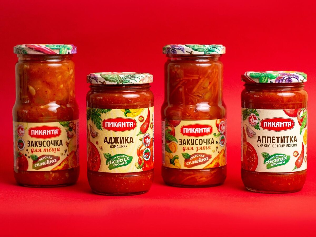 «Пиканта» же свои закуски и маринады выпускает в удобных стеклянных баночках, а в тетрапаке — протёртую мякоть томатов пассата.